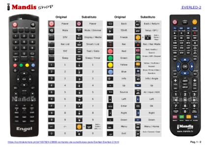 Um documento está incluso para ajudá-lo a usar o novo controle remoto facilmente, mostrando a correspondência dos botões.