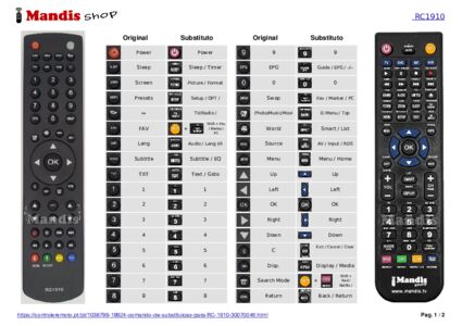 Um documento está incluso para ajudá-lo a usar o novo controle remoto facilmente, mostrando a correspondência dos botões.