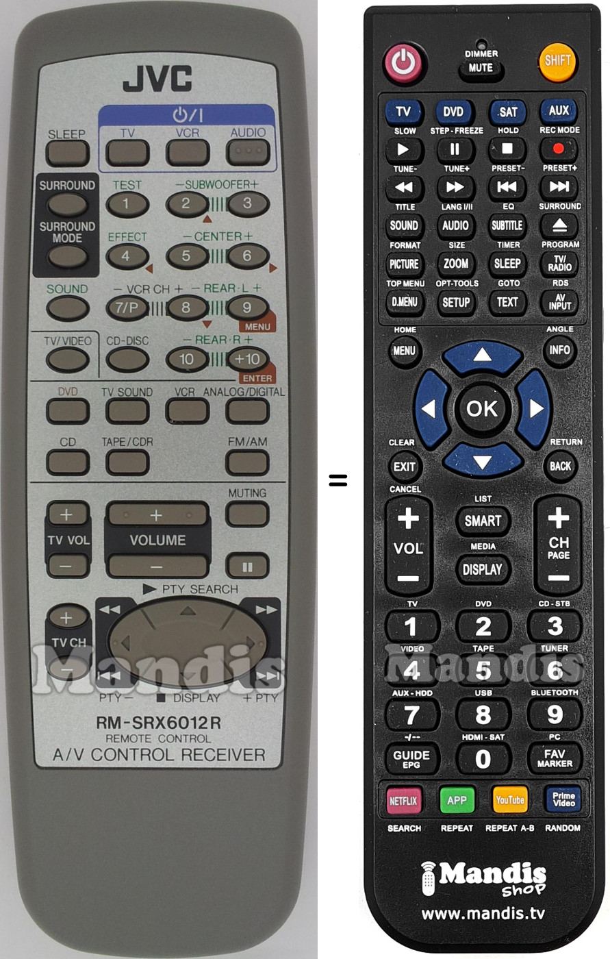 Abaixo, mostraremos a correspondência entre cada botão no controle remoto original e o botão que executa a mesma função no controle remoto de substituição. Em alguns casos, pode ser necessário pressionar a tecla SHIFT antes de pressionar outro botão para realizar determinadas ações. Essas funções adicionais geralmente não são amplamente utilizadas e são incluídas para facilitar o entendimento do controle remoto de substituição, ou porque o controle remoto original tem mais botões do que seu equivalente.