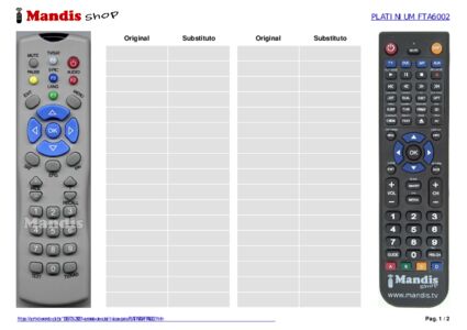 Comando à distância que substitui o original FTA9020 em todas as suas funções. Não se trata de um comando universal, mas sim de um comando que substitui o original. Receberá um comando completamente pronto. Para fazê-lo funcionar, basta colocar as pilhas. Não é necessário programá-lo. Damos-lhe total garantia de que o comando cumprirá com as mesmas funções do comando original.