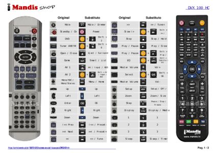 Início > Marcas > Controle remoto para DVX 100 HC > Distribuição interativa de teclas DVX 100 HC