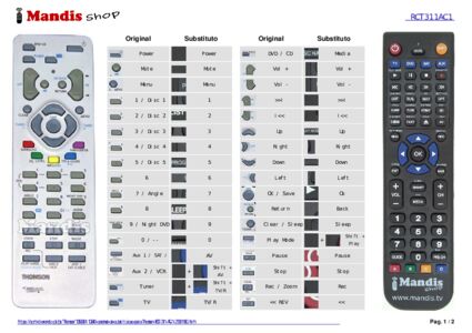 Este controle remoto substitui a maioria das funções do seu RCT 311 AC 1. Não é um controle remoto universal, mas sim uma cópia com a maioria dos botões e funções do seu original.