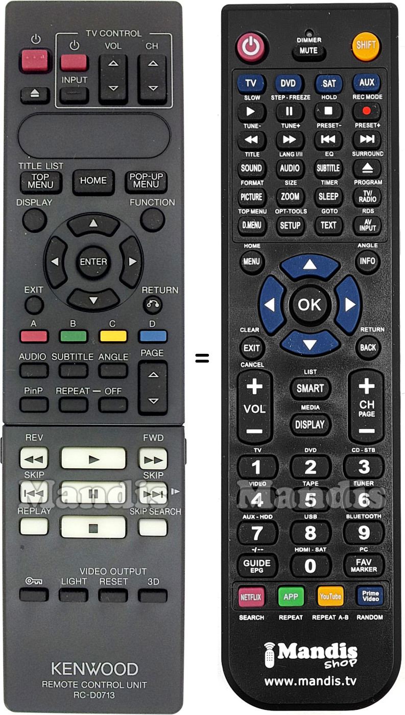 Este comando substitui completamente o seu RC-D0713 e oferece todas as funções do original.