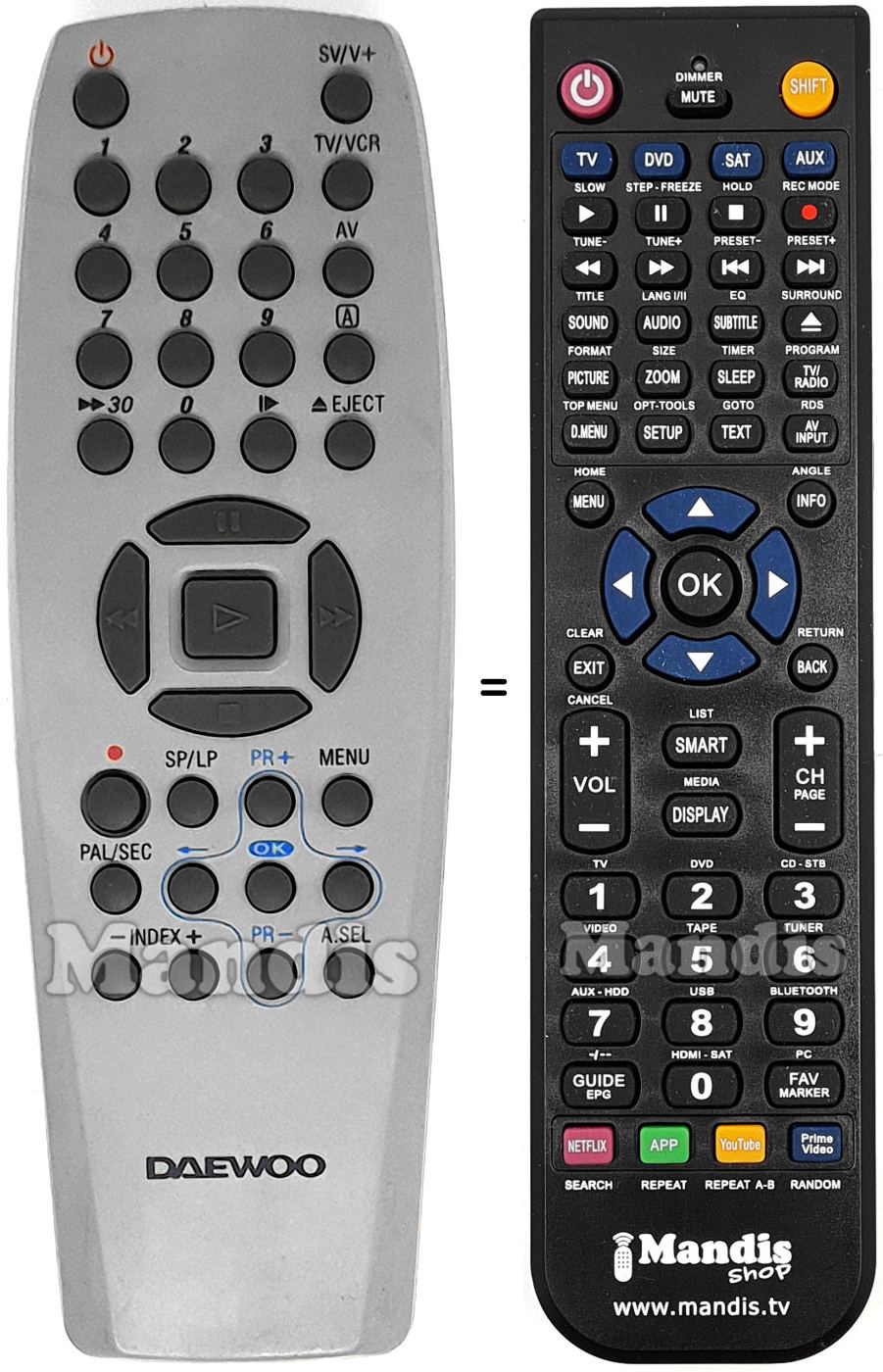 Abaixo, mostraremos a correspondência entre cada botão no controle remoto original e o botão que executa a mesma função no controle remoto de substituição. Em alguns casos, pode ser necessário pressionar a tecla SHIFT antes de pressionar outro botão para realizar determinadas ações. Essas funções adicionais geralmente não são amplamente utilizadas e são incluídas para facilitar o entendimento do controle remoto de substituição, ou porque o controle remoto original tem mais botões do que seu equivalente.