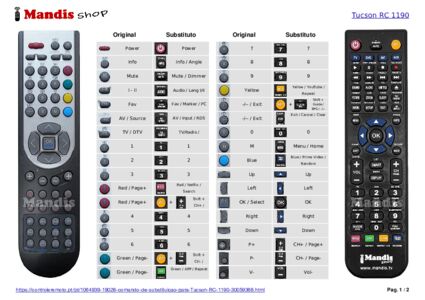 Abaixo, mostraremos a correspondência entre cada botão no controle remoto original e o botão que executa a mesma função no controle remoto de substituição. Em alguns casos, pode ser necessário pressionar a tecla SHIFT antes de pressionar outro botão para realizar determinadas ações. Essas funções adicionais geralmente não são amplamente utilizadas e são incluídas para facilitar o entendimento do controle remoto de substituição, ou porque o controle remoto original tem mais botões do que seu equivalente.