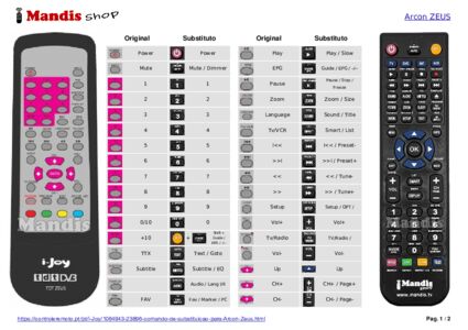 Abaixo, mostraremos a correspondência entre cada botão no controle remoto original e o botão que executa a mesma função no controle remoto de substituição. Em alguns casos, pode ser necessário pressionar a tecla SHIFT antes de pressionar outro botão para realizar determinadas ações. Essas funções adicionais geralmente não são amplamente utilizadas e são incluídas para facilitar o entendimento do controle remoto de substituição, ou porque o controle remoto original tem mais botões do que seu equivalente.