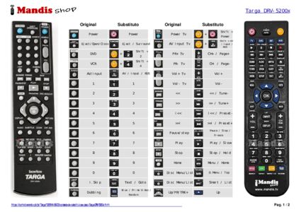 Início > Marcas > Comandos à Distância Targa > Controle remoto para Targa DRV-5200x > Distribuição interativa de teclas Targa DRV-5200x