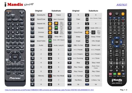Início > Marcas > Controle remoto para AXD7637 > Distribuição interativa de teclas AXD7637