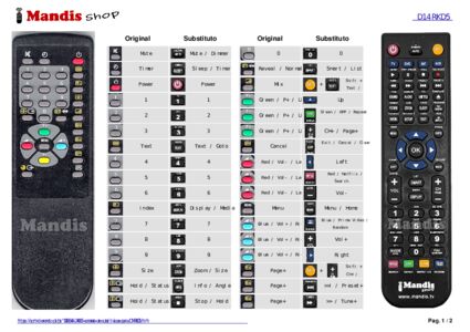 Um documento está incluso para ajudá-lo a usar o novo controle remoto facilmente, mostrando a correspondência dos botões.