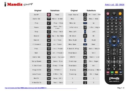 Início > Marcas > Comandos à Distância Amstrad > Controle remoto para Amstrad DD 9904 > Distribuição interativa de teclas Amstrad DD 9904