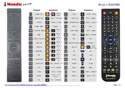 Início > Marcas > Comandos à Distância Marantz > Controle remoto para Marantz RC002PMND > Distribuição interativa de teclas Marantz RC002PMND