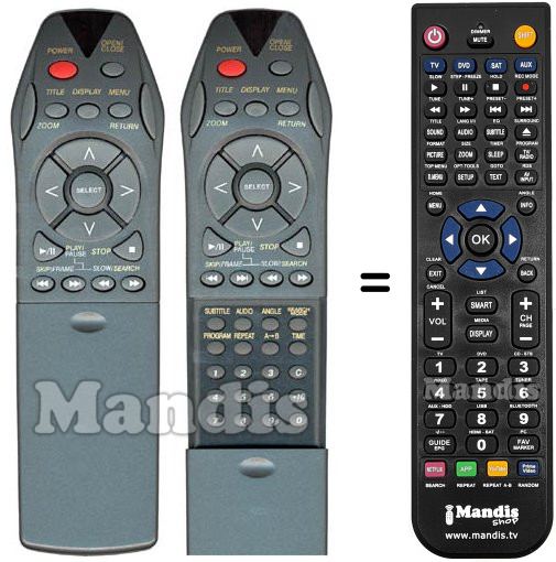 Abaixo, mostraremos a correspondência entre cada botão no controle remoto original e o botão que executa a mesma função no controle remoto de substituição. Em alguns casos, pode ser necessário pressionar a tecla SHIFT antes de pressionar outro botão para realizar determinadas ações. Essas funções adicionais geralmente não são amplamente utilizadas e são incluídas para facilitar o entendimento do controle remoto de substituição, ou porque o controle remoto original tem mais botões do que seu equivalente.