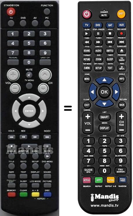 Comando à distância que substitui o original RCALD192200 em todas as suas funções.
