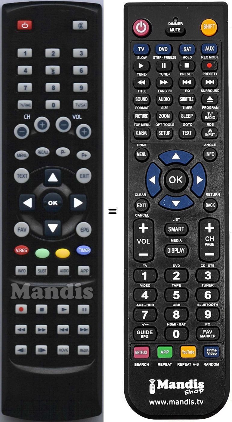 Comando à distância que substitui o original RG405PVRS7 em todas as suas funções.