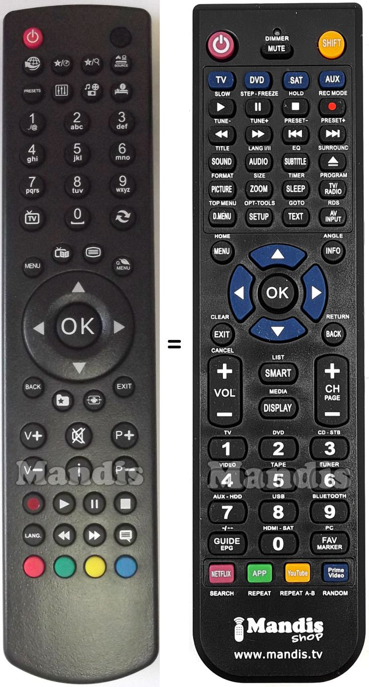 Comando à distância que substitui o original RC 1912 (30076862) em todas as suas funções.