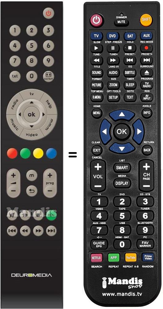 Comando à distância que substitui o original em todas as suas funções.