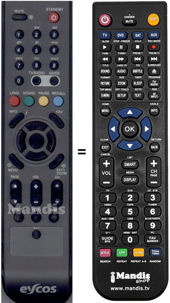 Comando à distância que substitui o original em todas as suas funções.