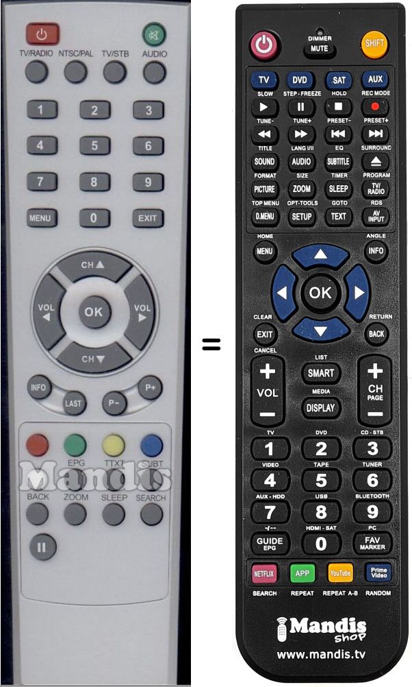 Comando à distância que substitui o original em todas as suas funções.