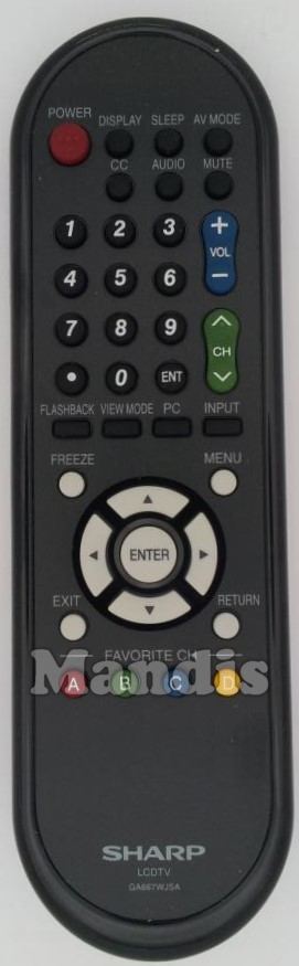 Comando à distância original GA667WJSA (RRMCGA667WJSA) que serve para televisores da marca Sharp.