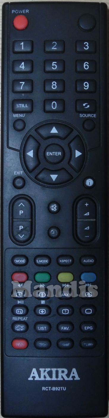 Comando à distância original RCTB92TU da marca AKIRA. Trata-se de um modelo original de comando à distância.
