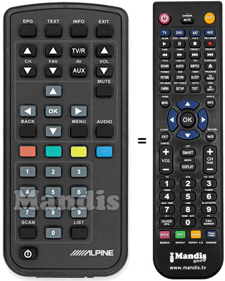 Comando à distância que substitui o original em todas as suas funções.