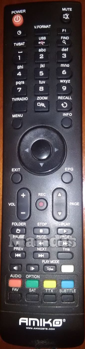 Comando à distância original SHD8140CXE da marca AMIKO. Trata-se de um modelo original de comando à distância.