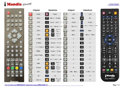 Um documento está incluso para ajudá-lo a usar o novo controle remoto facilmente, mostrando a correspondência dos botões.