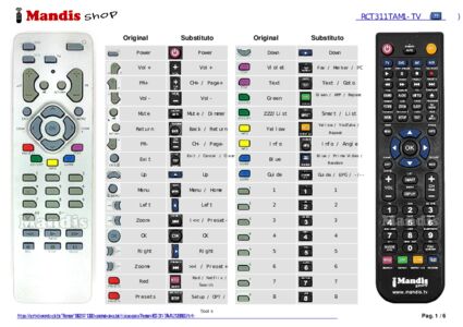 Início > Marcas > Comandos à Distância AOC > Controle remoto para AOC RCT 311 TAM 1 > Distribuição interativa de teclas AOC RCT 311 TAM 1