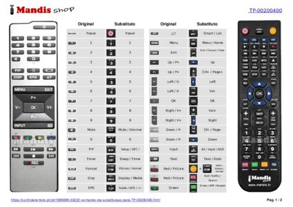 Um documento está incluso para ajudá-lo a usar o novo controle remoto facilmente, mostrando a correspondência dos botões.