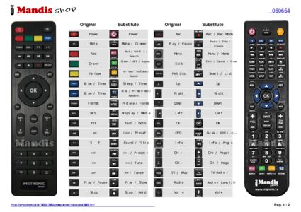 Abaixo, mostraremos a correspondência entre cada botão no controle remoto original e o botão que executa a mesma função no controle remoto de substituição. Em alguns casos, pode ser necessário pressionar a tecla SHIFT antes de pressionar outro botão para realizar determinadas ações. Essas funções adicionais geralmente não são amplamente utilizadas e são incluídas para facilitar o entendimento do controle remoto de substituição, ou porque o controle remoto original tem mais botões do que seu equivalente.