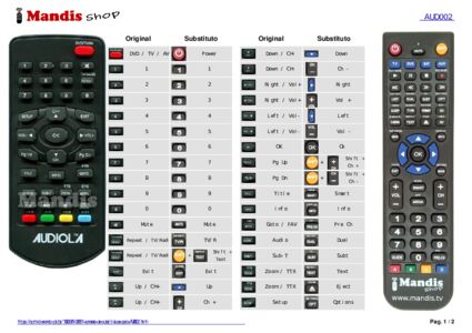 Abaixo, mostraremos a correspondência entre cada botão no controle remoto original e o botão que executa a mesma função no controle remoto de substituição. Em alguns casos, pode ser necessário pressionar a tecla SHIFT antes de pressionar outro botão para realizar determinadas ações. Essas funções adicionais geralmente não são amplamente utilizadas e são incluídas para facilitar o entendimento do controle remoto de substituição, ou porque o controle remoto original tem mais botões do que seu equivalente.
