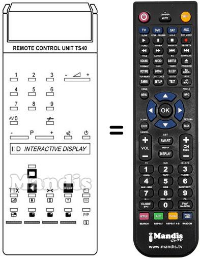 Comando à distância que substitui o original TS 40 em todas as suas funções.