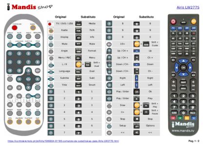 Um documento está incluso para ajudá-lo a usar o novo controle remoto facilmente, mostrando a correspondência dos botões.
