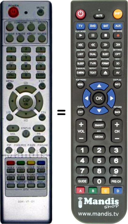 Início > Marcas > Comandos à Distância Airis > Controle remoto para AIRIS DDR-V7-D1