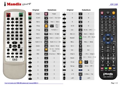 Abaixo, mostraremos a correspondência entre cada botão no controle remoto original e o botão que executa a mesma função no controle remoto de substituição. Em alguns casos, pode ser necessário pressionar a tecla SHIFT antes de pressionar outro botão para realizar determinadas ações. Essas funções adicionais geralmente não são amplamente utilizadas e são incluídas para facilitar o entendimento do controle remoto de substituição, ou porque o controle remoto original tem mais botões do que seu equivalente.