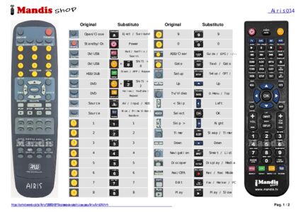 Um documento está incluso para ajudá-lo a usar o novo controle remoto facilmente, mostrando a correspondência dos botões.