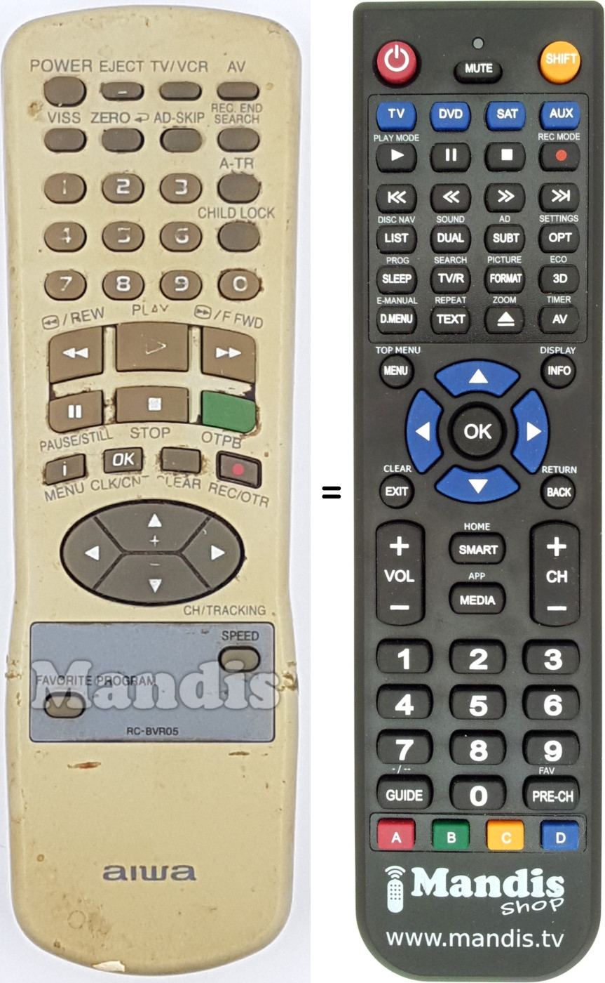 Comando à distância que substitui o original RC-BVR05 em todas as suas funções.