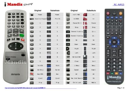 Abaixo, mostraremos a correspondência entre cada botão no controle remoto original e o botão que executa a mesma função no controle remoto de substituição. Em alguns casos, pode ser necessário pressionar a tecla SHIFT antes de pressionar outro botão para realizar determinadas ações. Essas funções adicionais geralmente não são amplamente utilizadas e são incluídas para facilitar o entendimento do controle remoto de substituição, ou porque o controle remoto original tem mais botões do que seu equivalente.