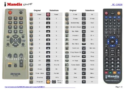 Comando à distância que substitui o original RC-CAS06 em todas as suas funções.
