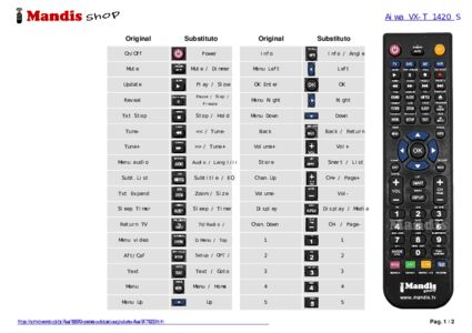 Início > Marcas > Comandos à Distância Aiwa > Controle remoto para Aiwa VX-T1420S > Distribuição interativa de teclas Aiwa VX-T1420S