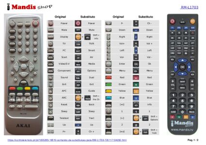 Comando à distância que substitui o original RM-L1703 (720117134200) em todas as suas funções.