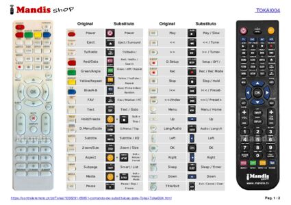Um documento está incluso para ajudá-lo a usar o novo controle remoto facilmente, mostrando a correspondência dos botões.