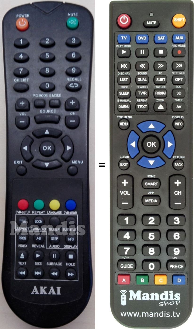 Comando à distância que substitui o original AKTV201D em todas as suas funções.