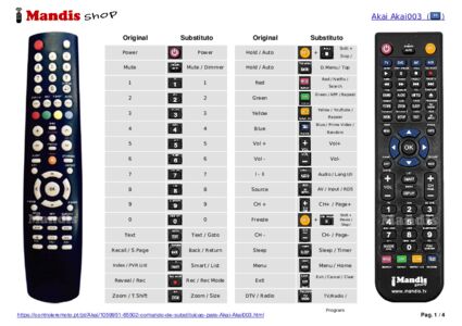 Um documento está incluso para ajudá-lo a usar o novo controle remoto facilmente, mostrando a correspondência dos botões.