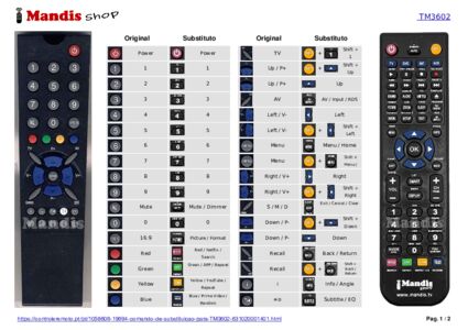 Um documento está incluso para ajudá-lo a usar o novo controle remoto facilmente, mostrando a correspondência dos botões.