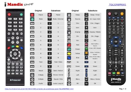 Abaixo, mostraremos a correspondência entre cada botão no controle remoto original e o botão que executa a mesma função no controle remoto de substituição. Em alguns casos, pode ser necessário pressionar a tecla SHIFT antes de pressionar outro botão para realizar determinadas ações. Essas funções adicionais geralmente não são amplamente utilizadas e são incluídas para facilitar o entendimento do controle remoto de substituição, ou porque o controle remoto original tem mais botões do que seu equivalente.