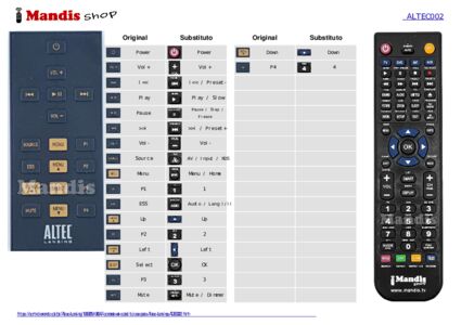 Abaixo, mostraremos a correspondência entre cada botão no controle remoto original e o botão que executa a mesma função no controle remoto de substituição. Em alguns casos, pode ser necessário pressionar a tecla SHIFT antes de pressionar outro botão para realizar determinadas ações. Essas funções adicionais geralmente não são amplamente utilizadas e são incluídas para facilitar o entendimento do controle remoto de substituição, ou porque o controle remoto original tem mais botões do que seu equivalente.