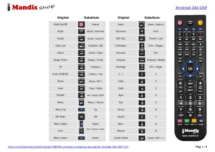 Abaixo, mostraremos a correspondência entre cada botão no controle remoto original e o botão que executa a mesma função no controle remoto de substituição. Em alguns casos, pode ser necessário pressionar a tecla SHIFT antes de pressionar outro botão para realizar determinadas ações. Essas funções adicionais geralmente não são amplamente utilizadas e são incluídas para facilitar o entendimento do controle remoto de substituição, ou porque o controle remoto original tem mais botões do que seu equivalente.