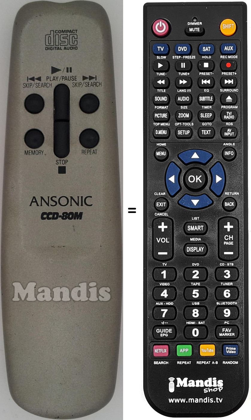 Controle remoto para ANSONIC CCD-80M