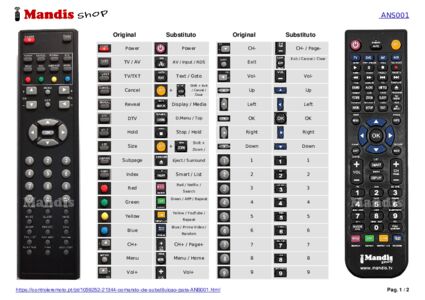 Um documento está incluso para ajudá-lo a usar o novo controle remoto facilmente, mostrando a correspondência dos botões.